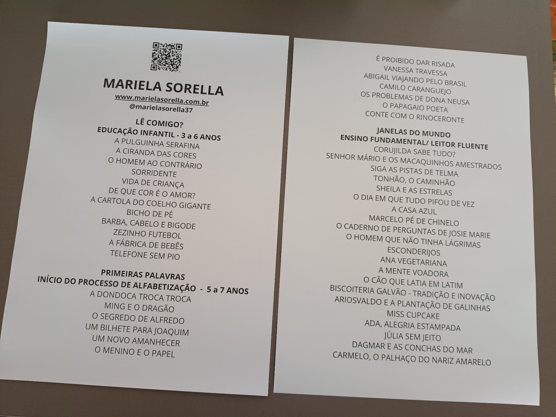 Uma lista impressa com informações sobre as coleções e títulos...