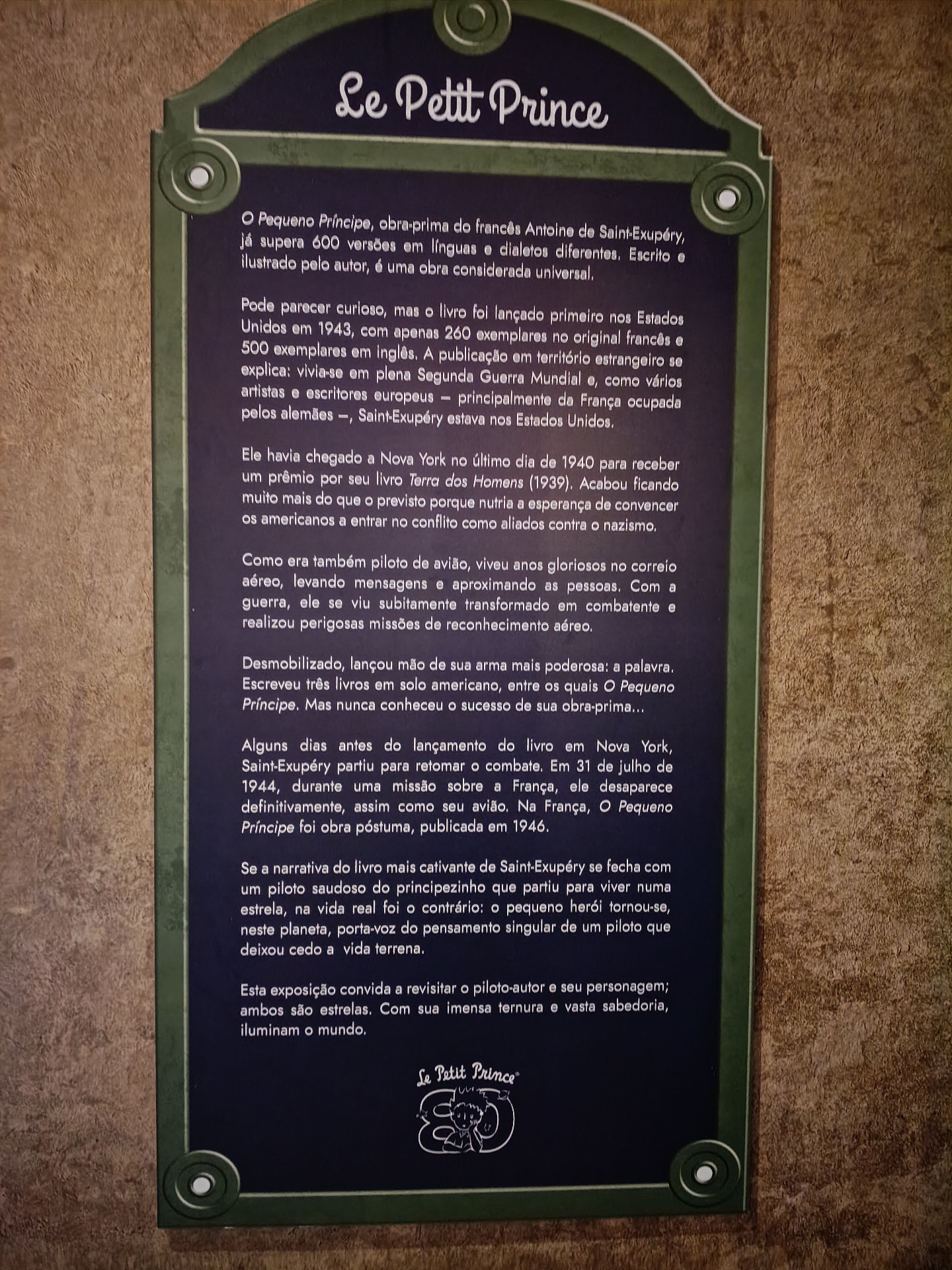 O clássico da literatura mundial, ao mesmo tempo delicado e profundo, ganhou recentemente uma Exposição no MIS, em São Paulo (https://misexperience.org.br/exposicao/exposicao-o-pequeno-principe-80-anos/).