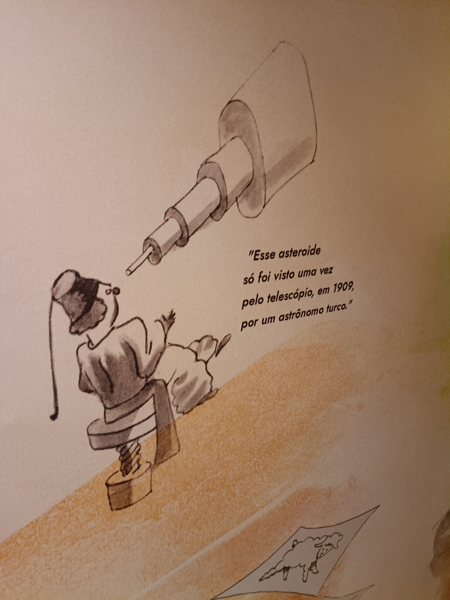 E é um pouso forçado no deserto do Saara que encontra um menino de cabelos dourados e cachecol amarelo, que lhe pede para desenhar um carneiro.