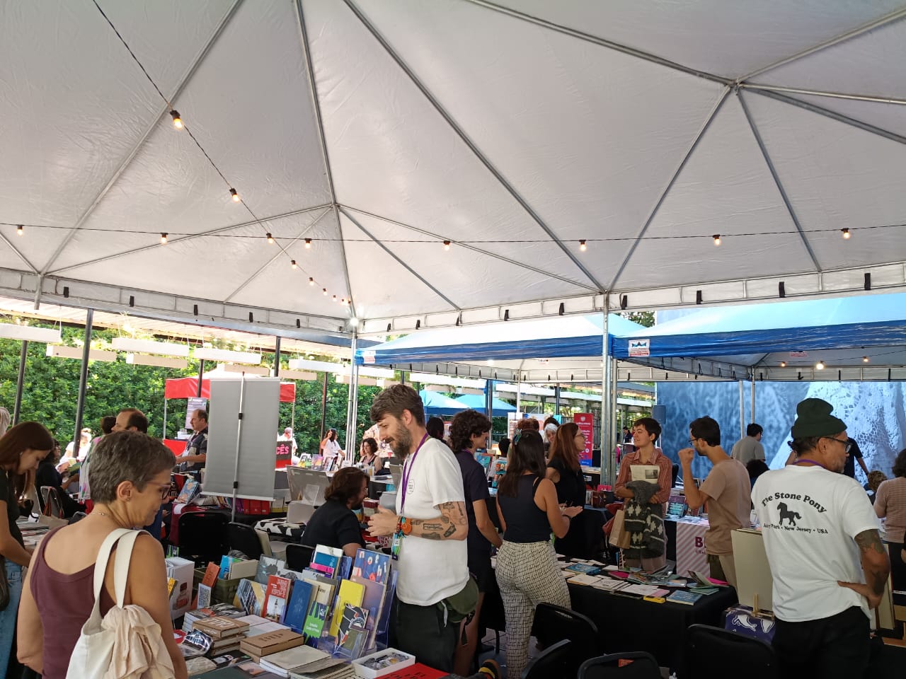 Segundo Cris, funcionária do MIS — ou simplesmente Sushi, como é conhecida —, a feira nasceu de uma proposta da Editora Lote 42 em parceria com o museu, alinhada ao seu perfil voltado à valorização da arte visual. "Essa é a primeira edição e pretendemos repetir esse evento mais vezes", contou. "Nossa proposta é reunir público e editoras, aproximando os autores de seus leitores."