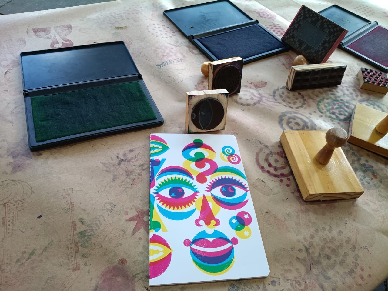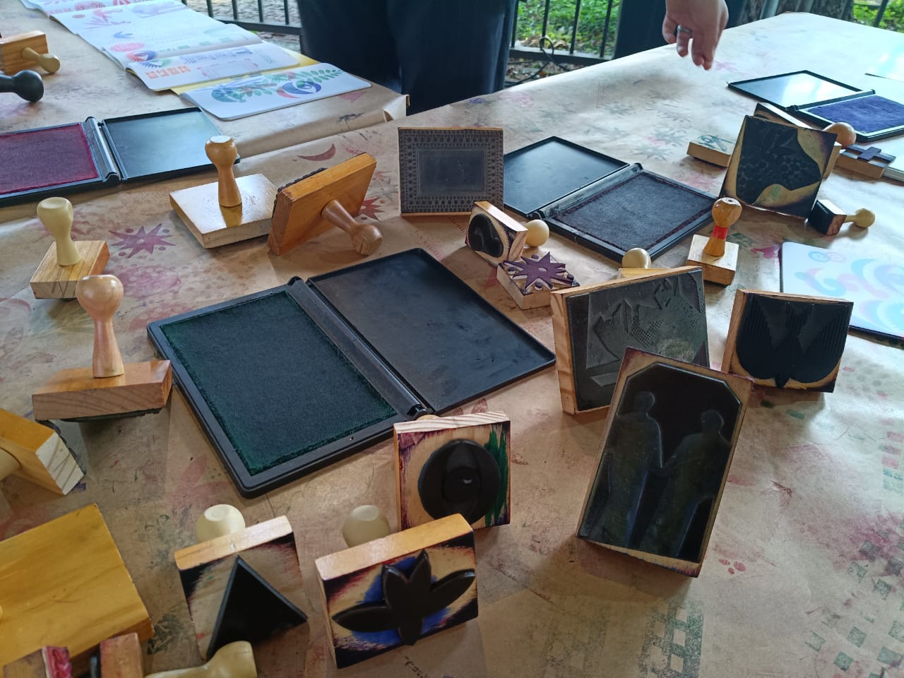 Outro ponto alto foi a oficina "Cara Carimbo", que conquistou participantes de todas as idades. A proposta era simples e encantadora: cada pessoa recebia um caderninho e, com diferentes carimbos, podia criar rostos e composições visuais. "Essa oficina está sendo um sucesso — com materiais recicláveis, está atraindo adultos e crianças e aguçando a criatividade de todos", destacou Ana Paula Santos, também do MIS.
